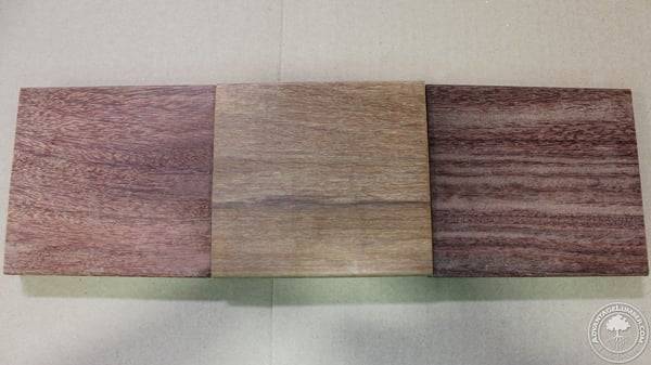 Below: Cumaru and the different colors it comes in as well as quarter-sawn grain.