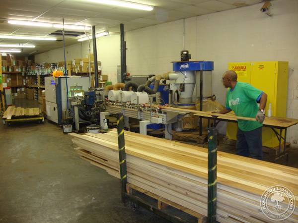 Hickory is commonly used in flooring and trim, which we custom mill in our North Carolina facility. With our state of the art machinery, we can create long flooring boards while maintaining a high standard of quality. Below you’ll find pictures of our hard workers in North Carolina creating an order of long-length Hickory Flooring.