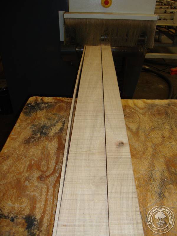The beautiful hickory that was gang ripped and passed through the molder gets it’s final coating in our UV finishing line. This adds the beautiful gloss and protection to the wood.