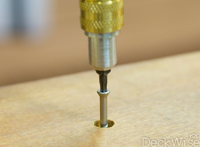 Screw-and-plug systems combine the strength of face fastening with a more refined appearance. In this approach, a screw secures the deck board to the joist, and a matching plug made from the same decking material is installed over the screw head to conceal the connection point.