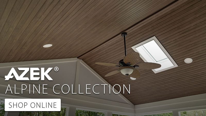Classic Wood Ceiling Aesthetics. Modern Performance. Discover the AZEK® Alpine Collection, where the warmth and beauty of natural wood meet the resilience of advanced engineering. Crafted to deliver timeless appeal with minimal upkeep, this collection captures the rich look of stained hardwood without the need for regular maintenance. Perfect for enhancing ceilings, soffits, and porches, each …